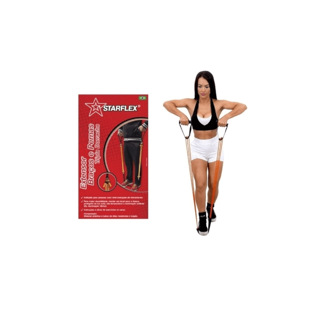 Transforme qualquer lugar no seu espaço de treino com o Extensor de Braços e Pernas Starflex. Projetado para oferecer resistência variável e segura, este acessório é a solução perfeita para quem busca tonificar a musculatura, melhorar a flexibilidade ou realizar exercícios de reabilitação com praticidade.